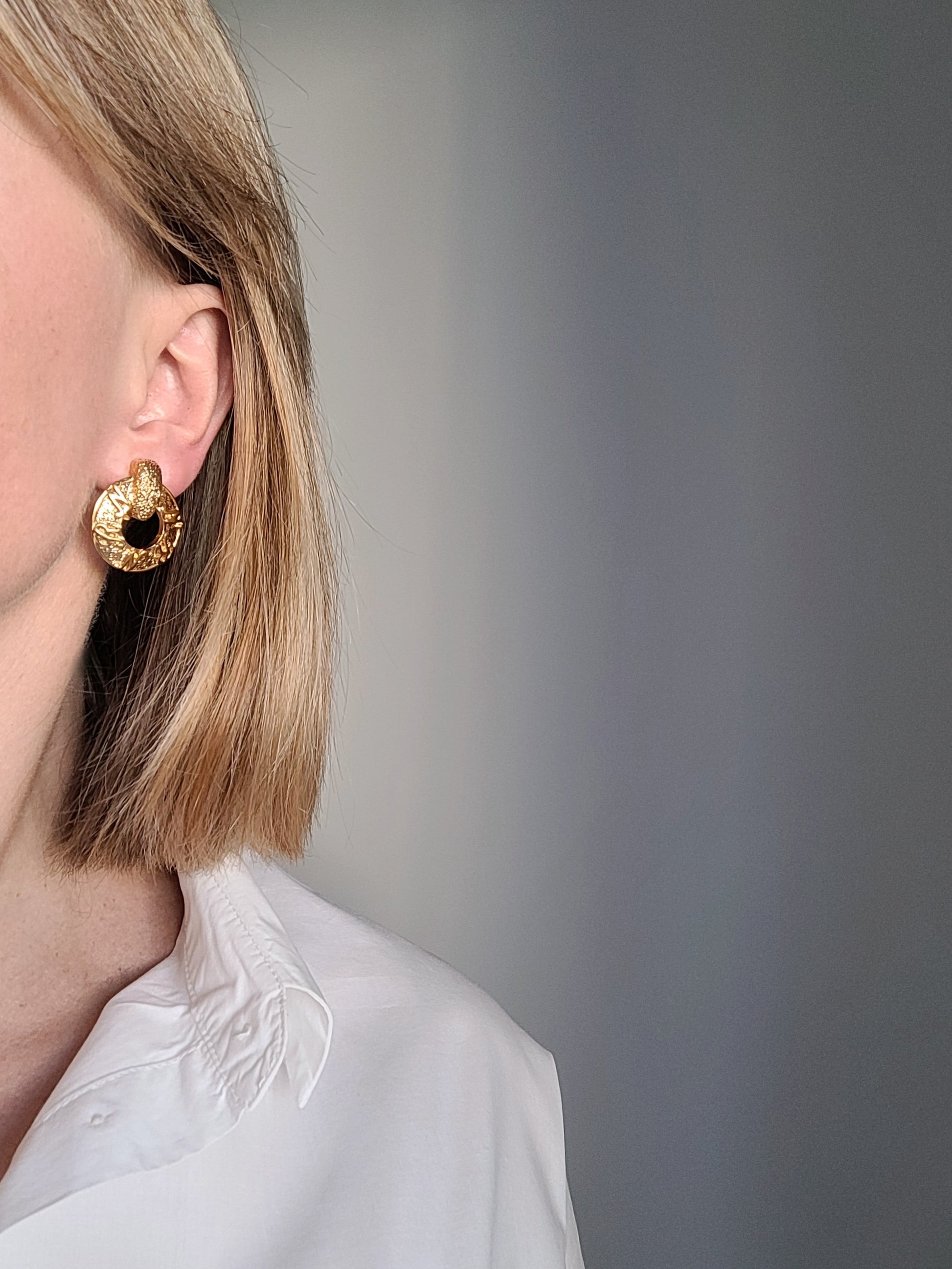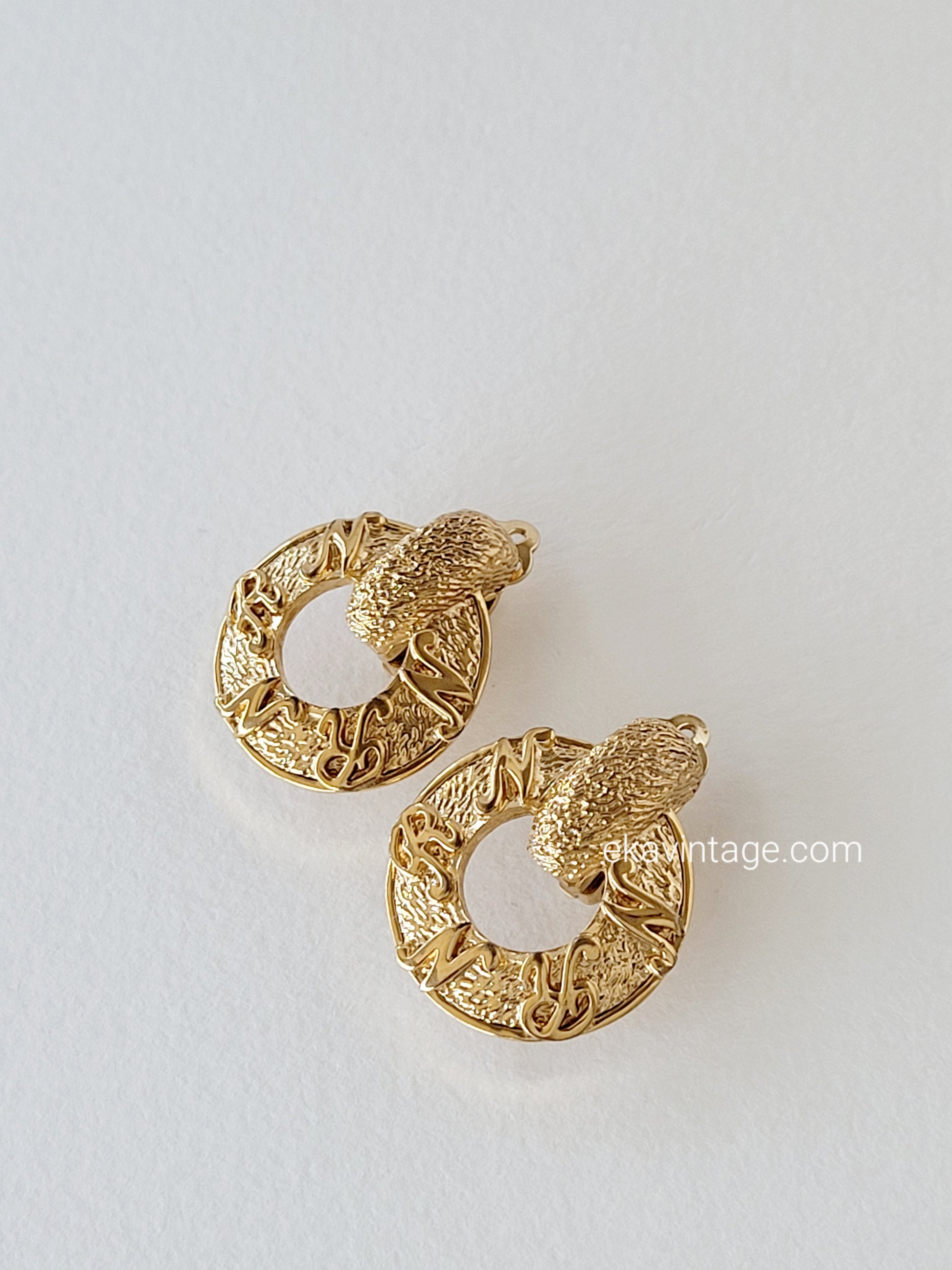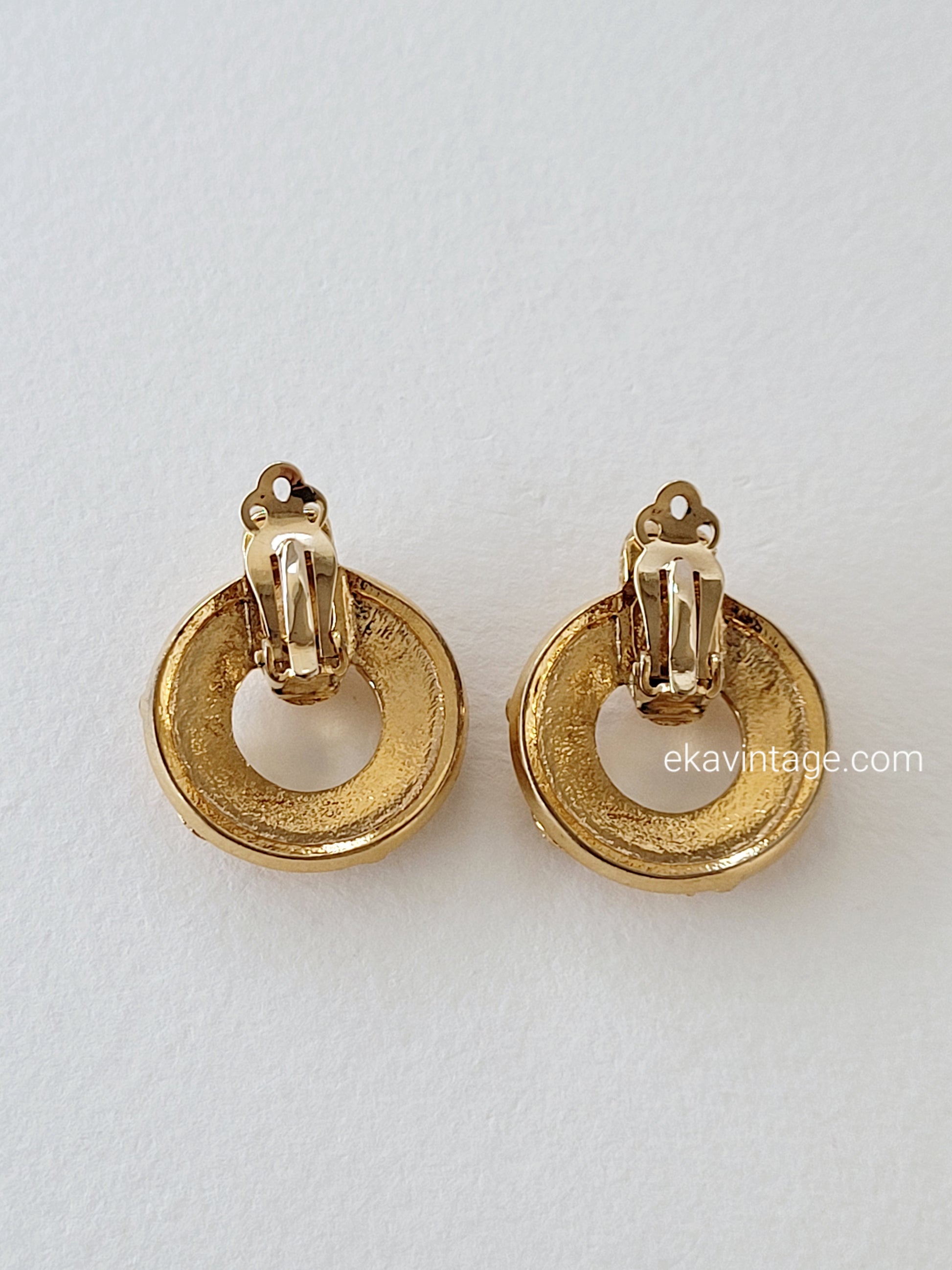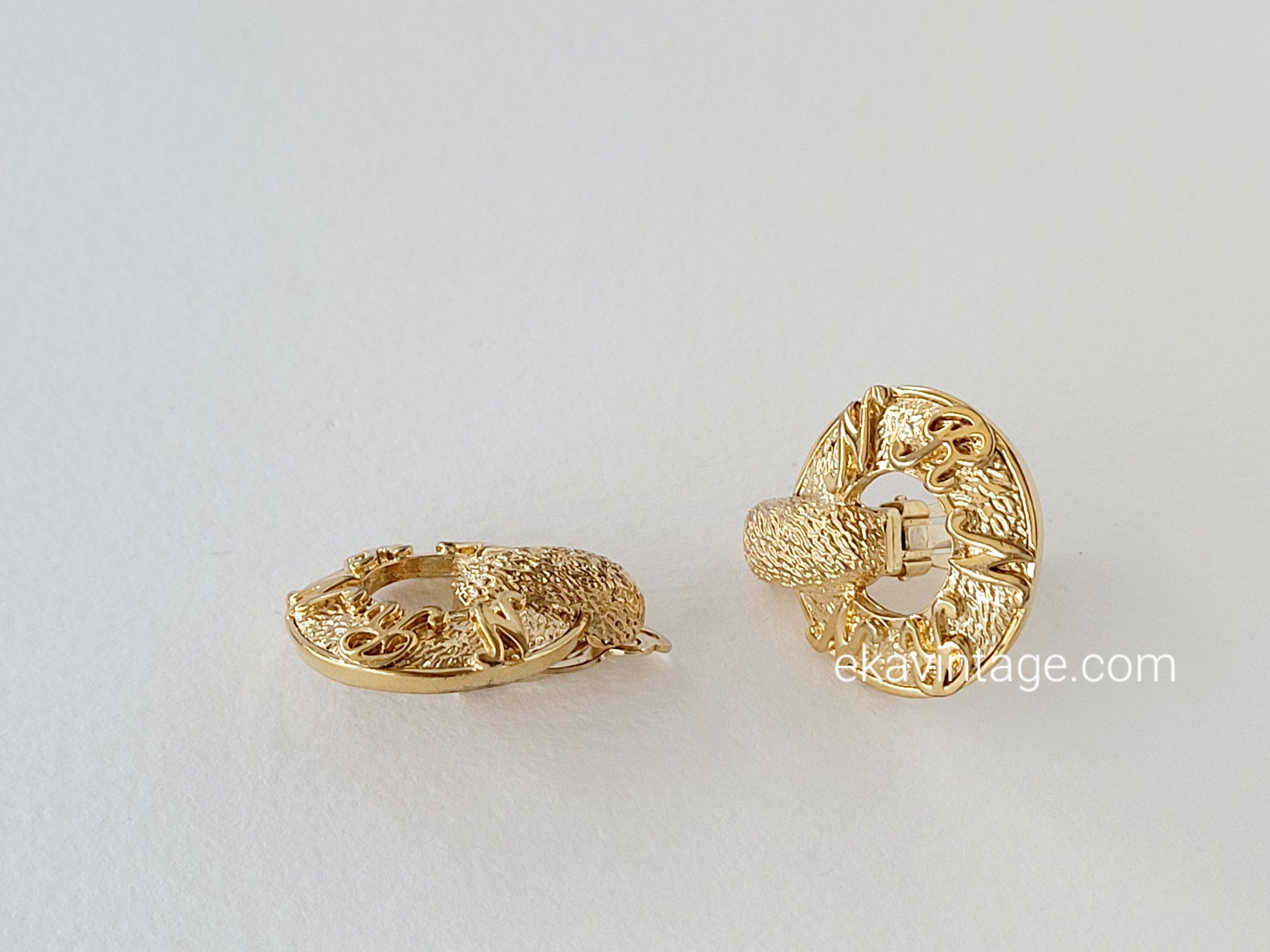 Très belles et authentiques boucles d'oreilles vintage Nina Ricci, en plaqué or.