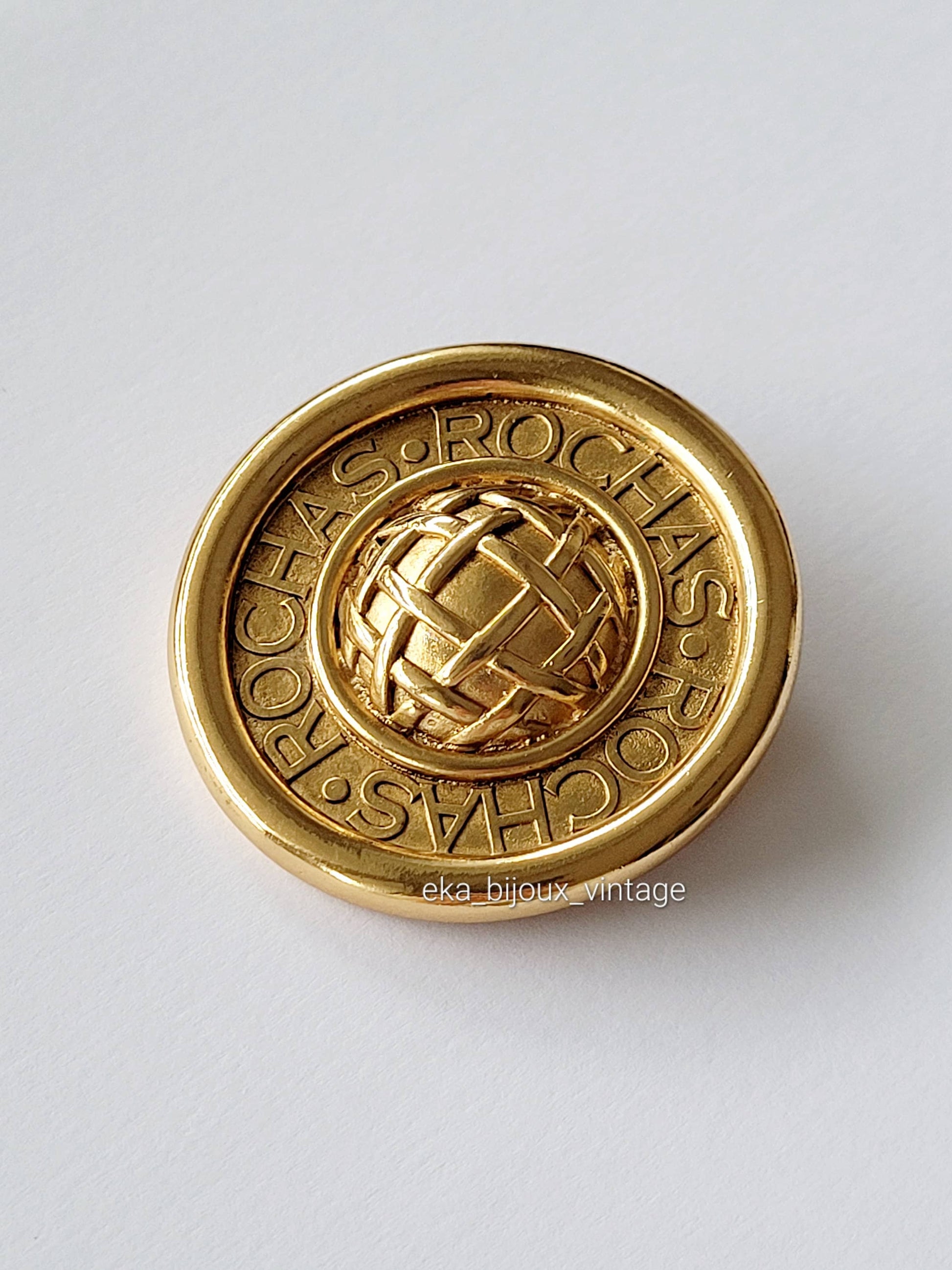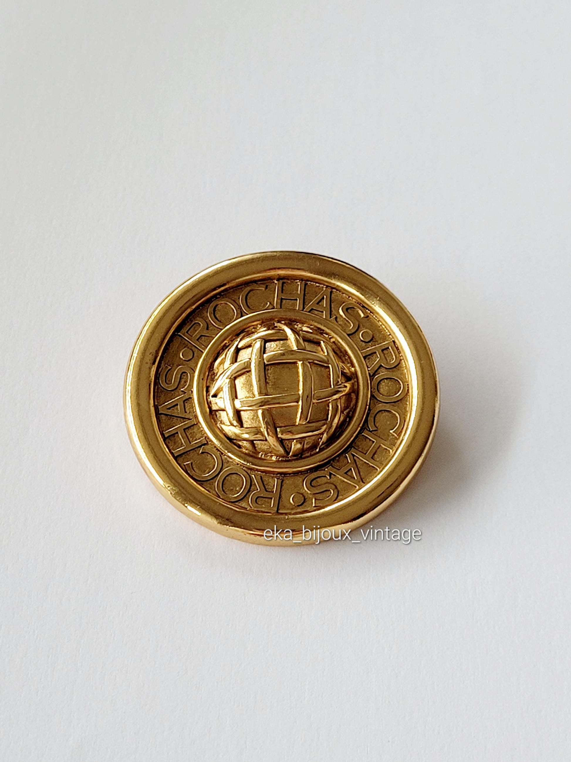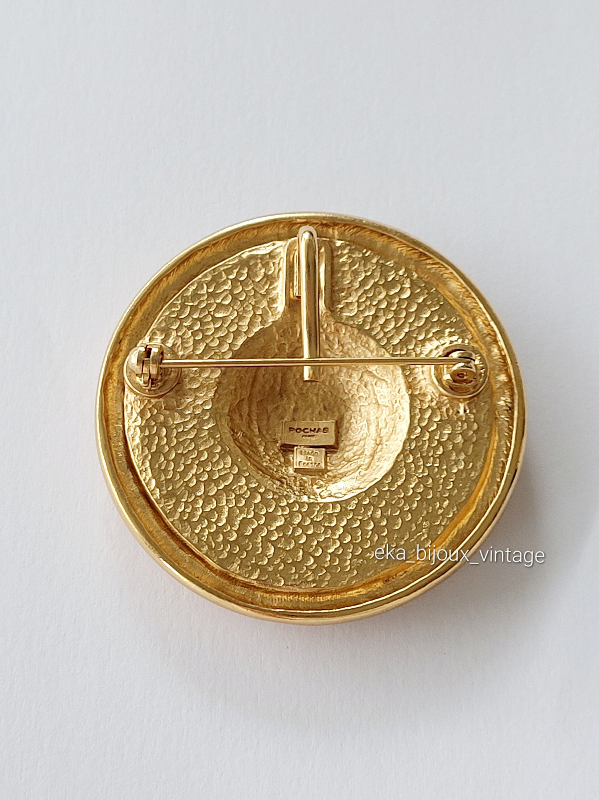 Magnifique broche/pendentif vintage Rochas Paris en plaqué or.