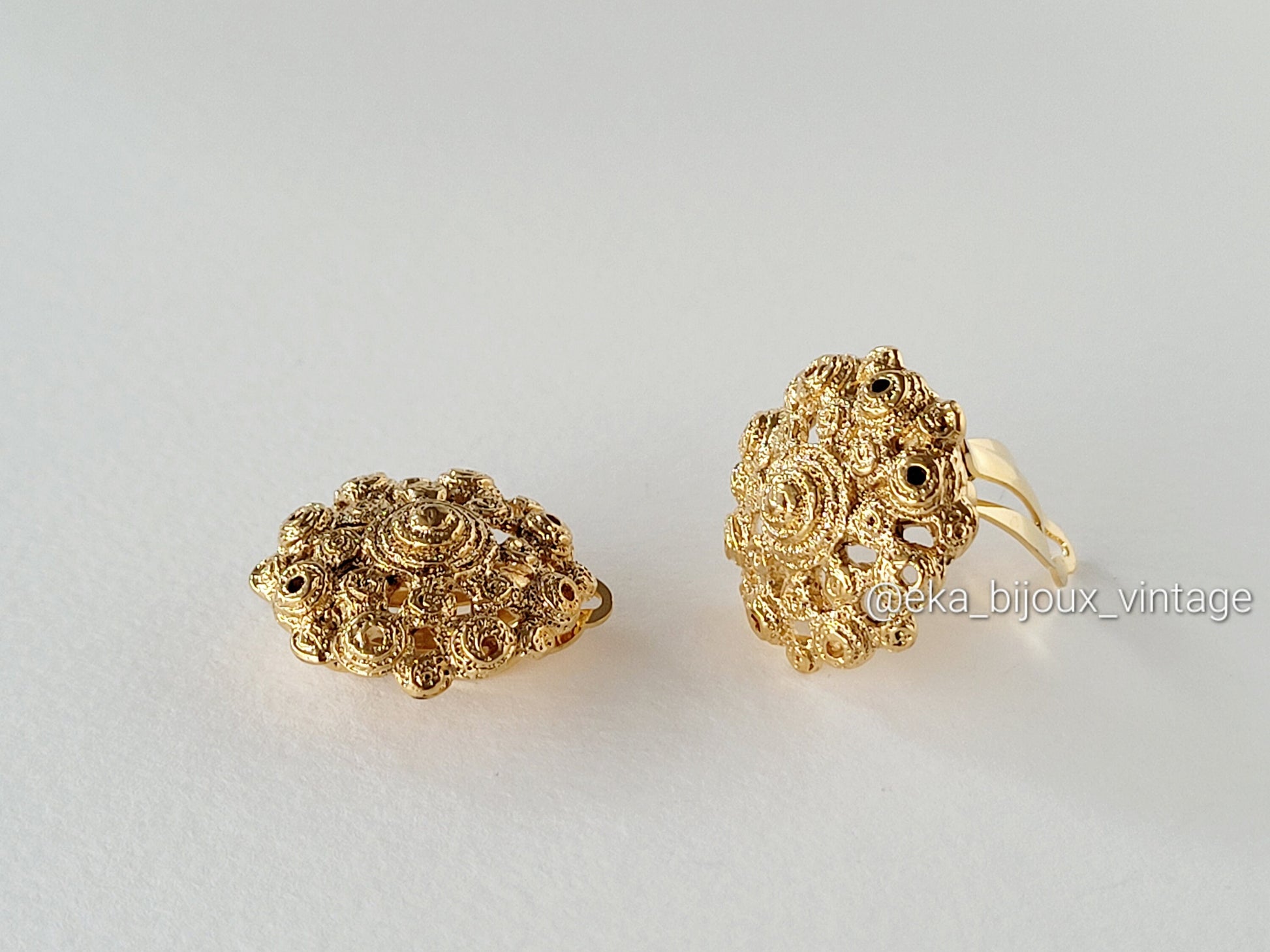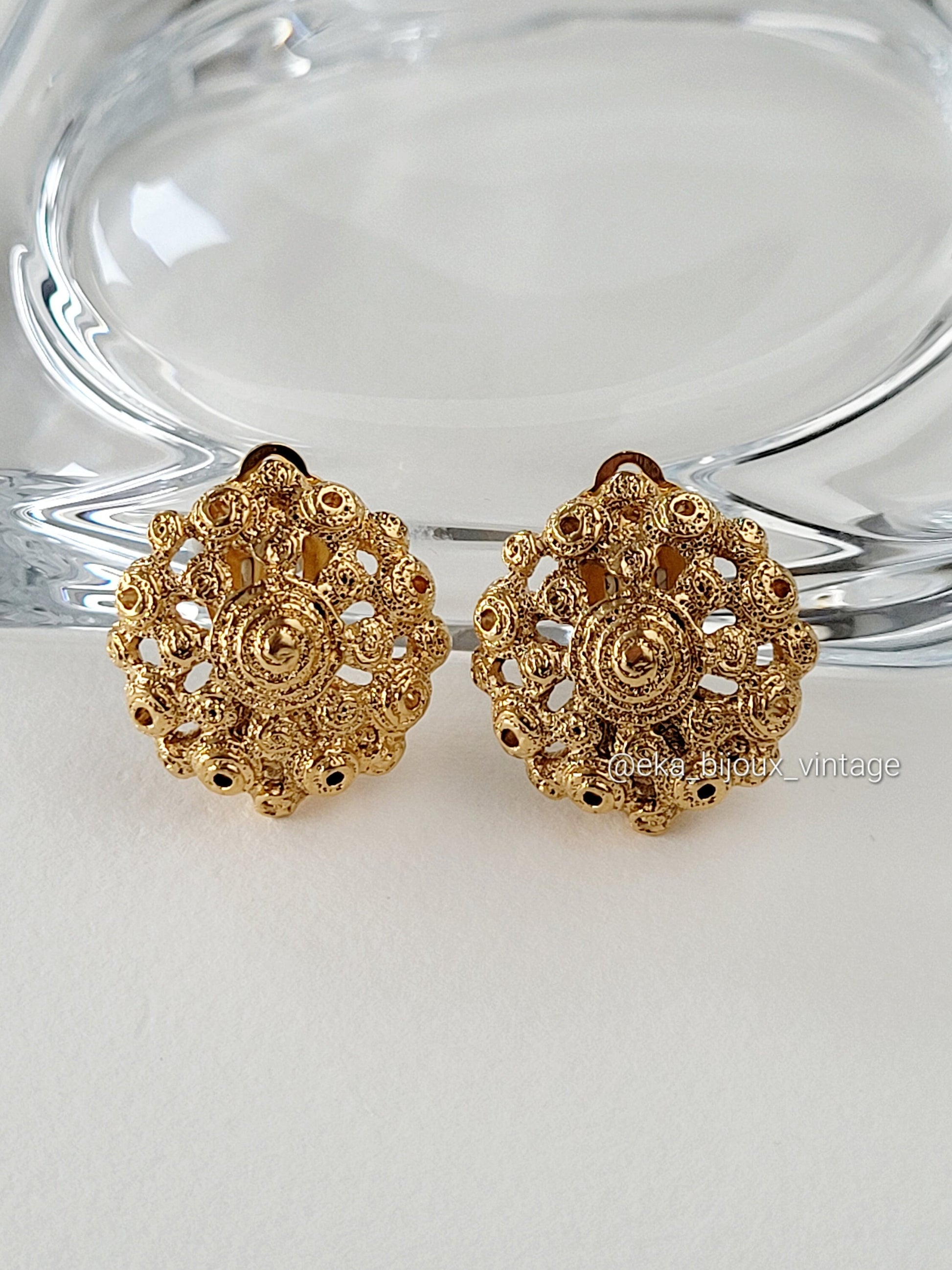 Authentiques boucles d'oreilles vintage Rochas Paris en plaqué or.