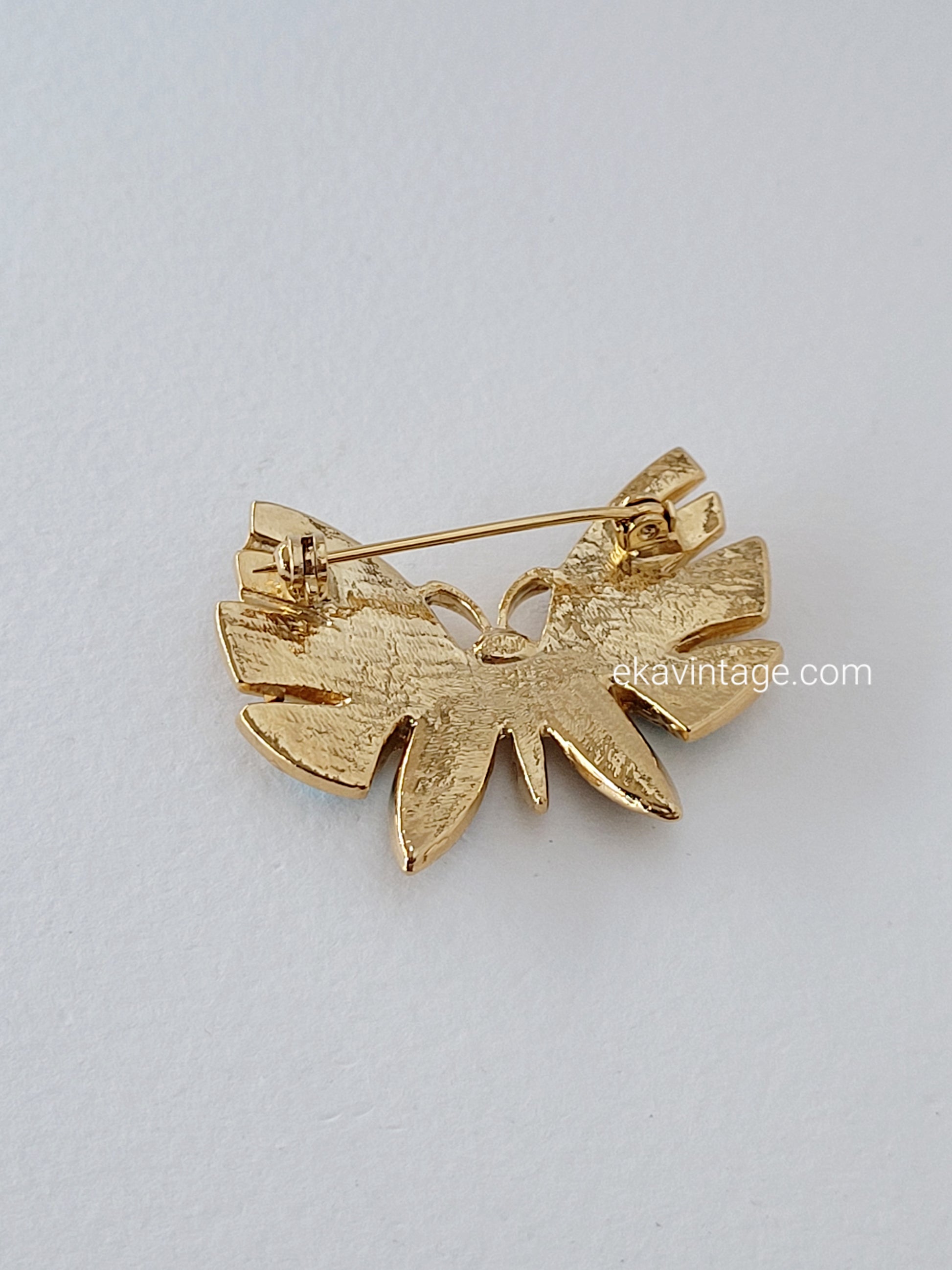 Très belle broche vintage Sphinx, sertie de cristaux et de cabochons en lucite de différentes couleurs.