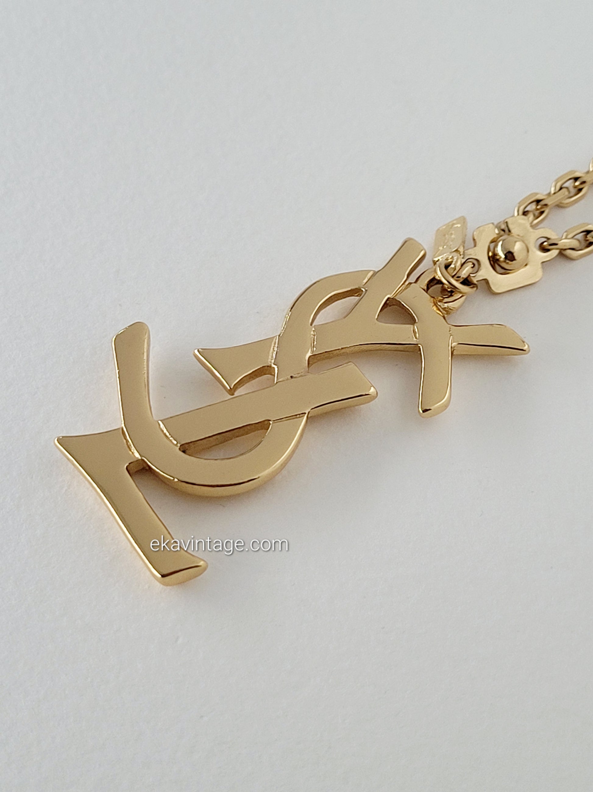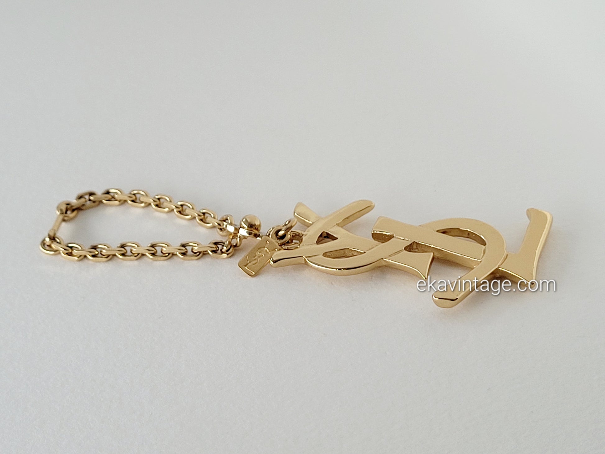 Authentique bijou de sac ou porte-clé Yves Saint Laurent en plaqué or.