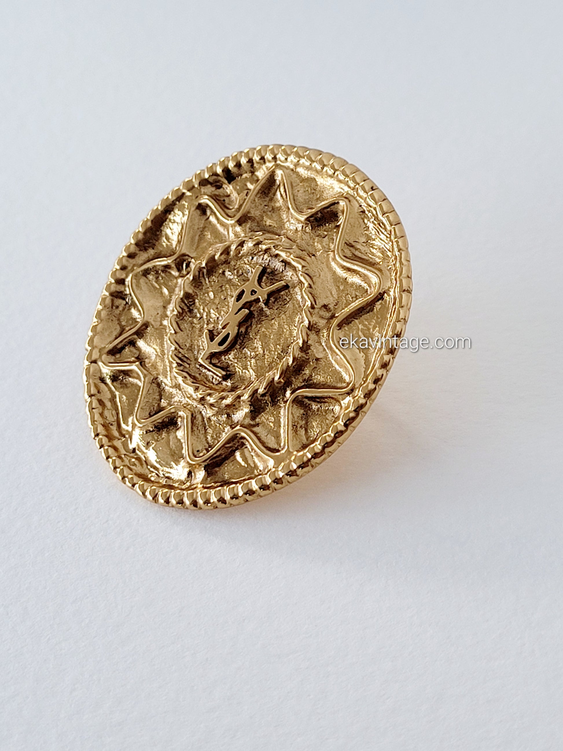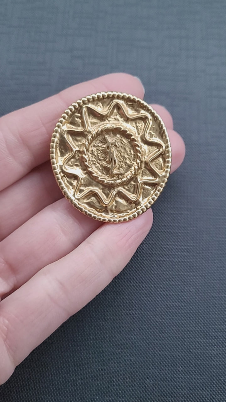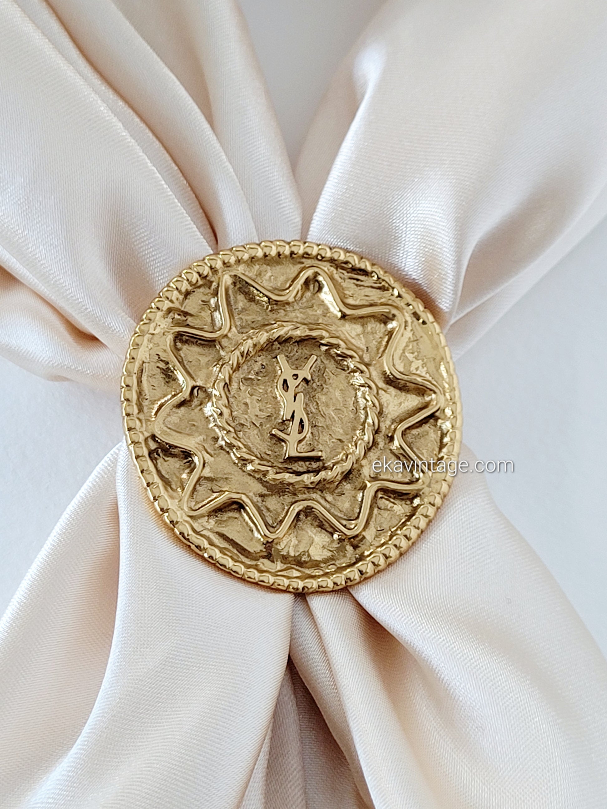 Bijou pour foulard vintage Yves Saint Laurent en métal doré.