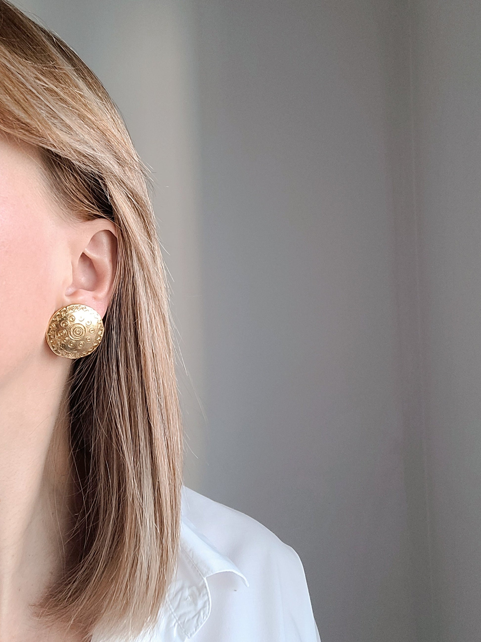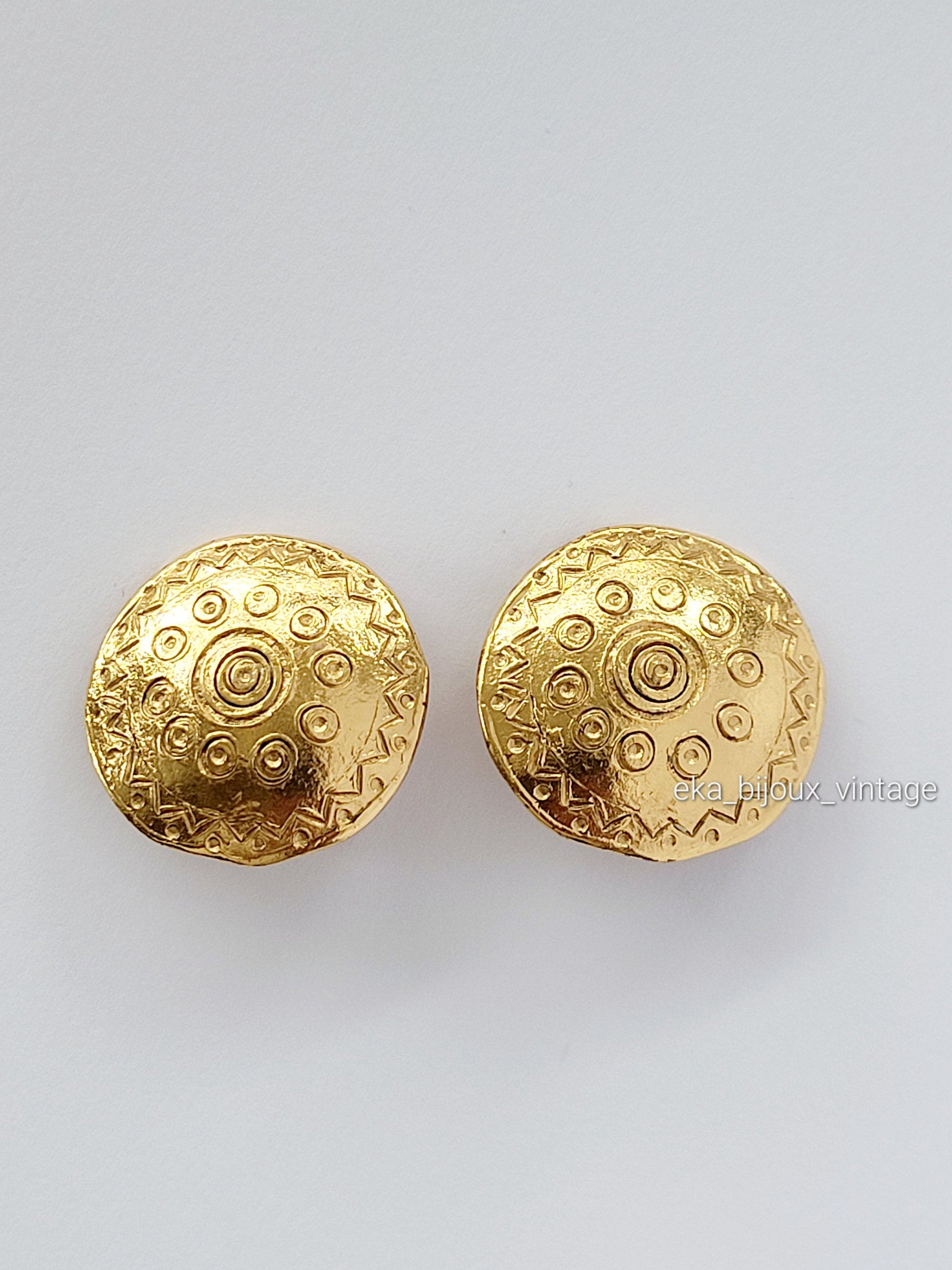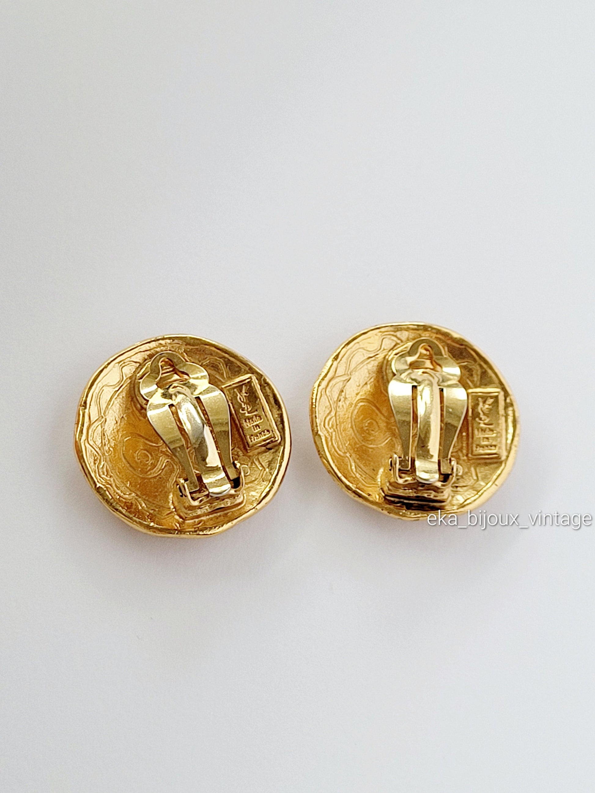 Très belles et authentiques boucles d'oreilles vintage Yves Saint Laurent, en plaqué or.
