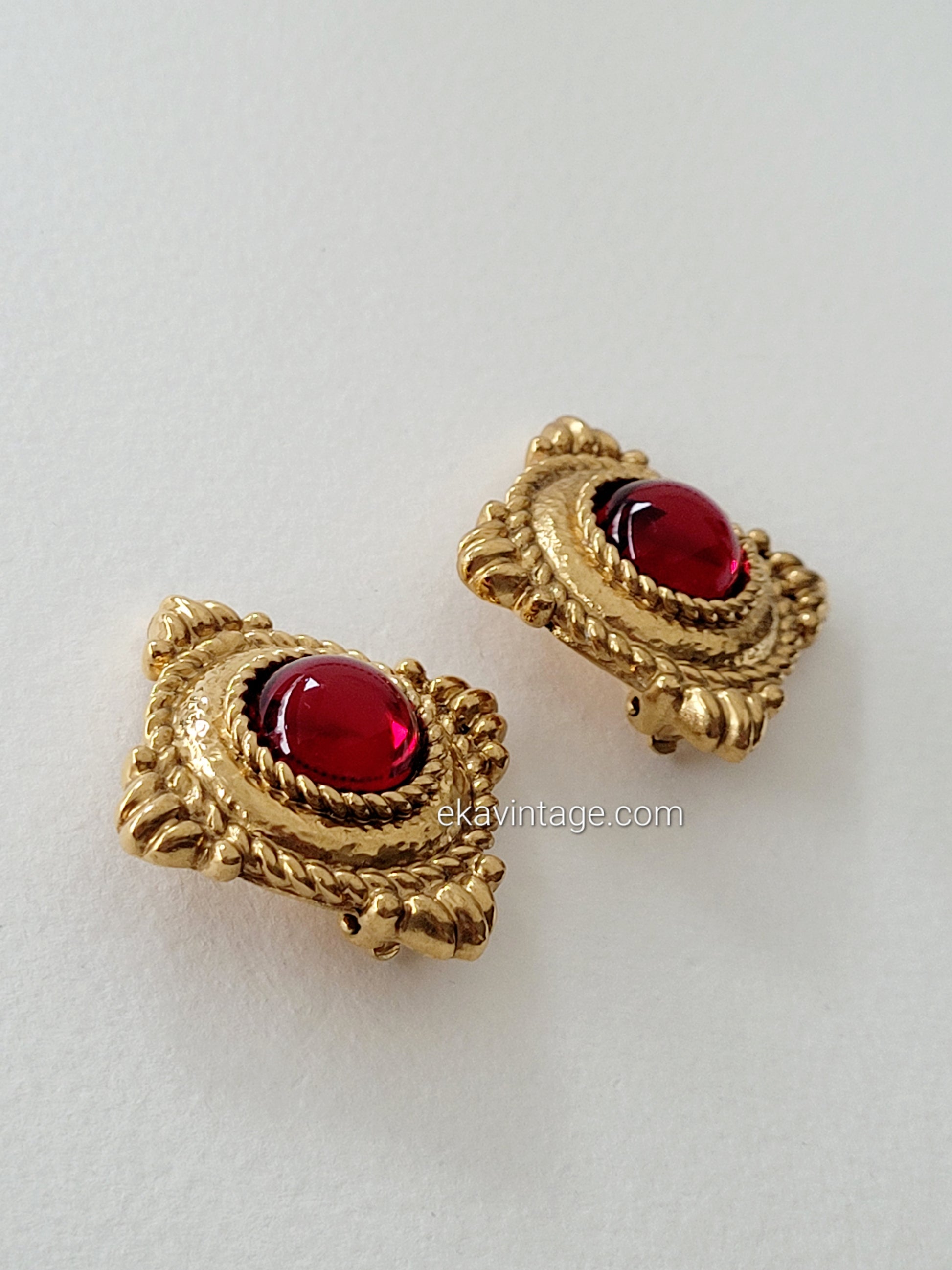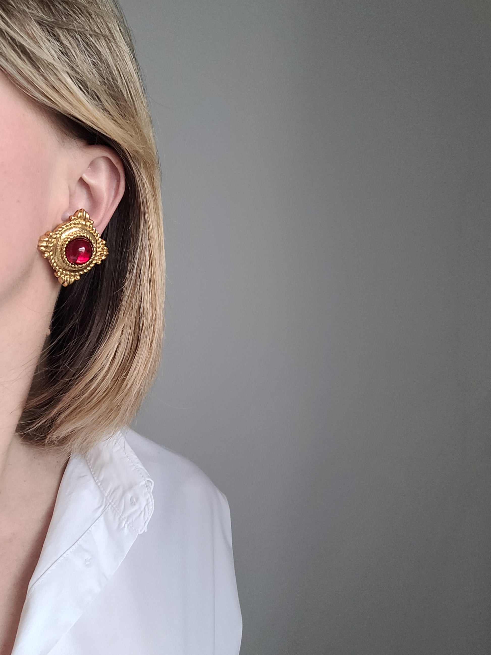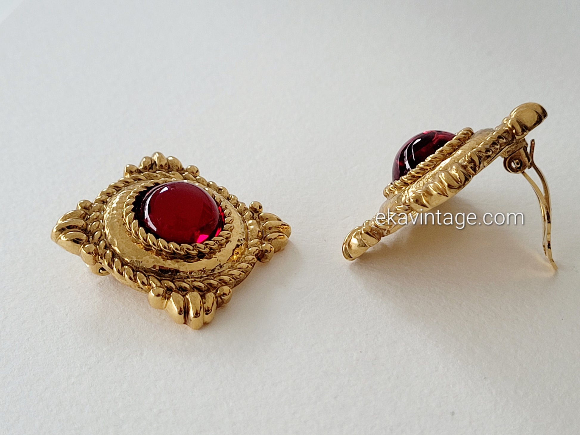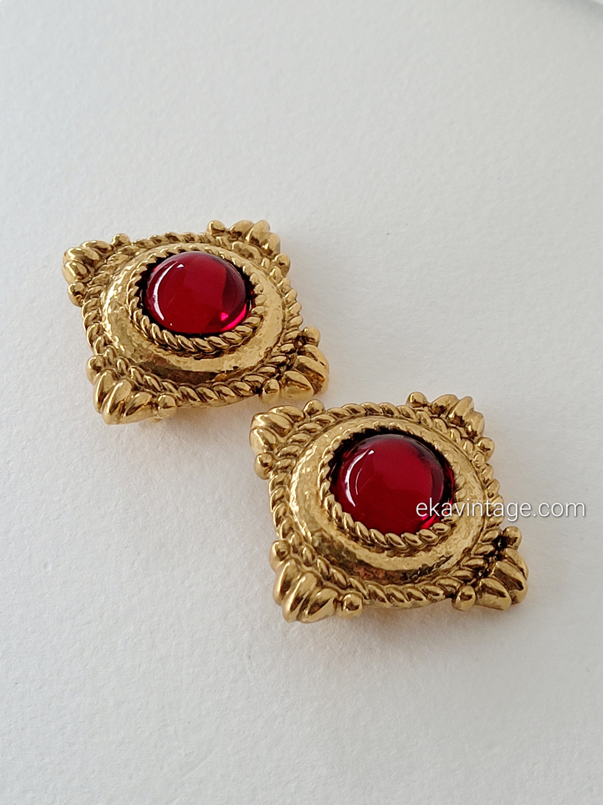 Yves Saint Laurent - Boucles d'oreilles vintage Cabochons rouges
