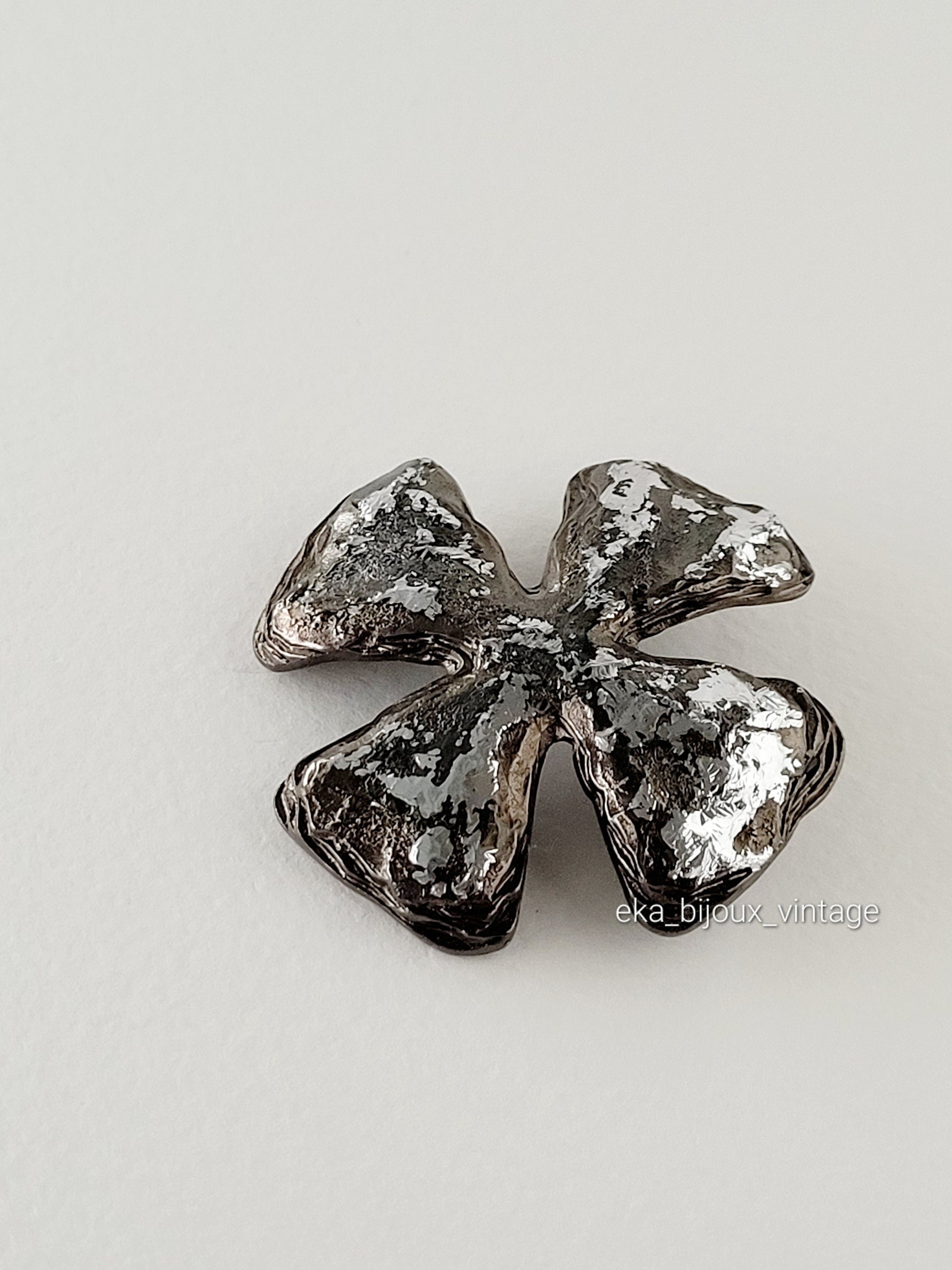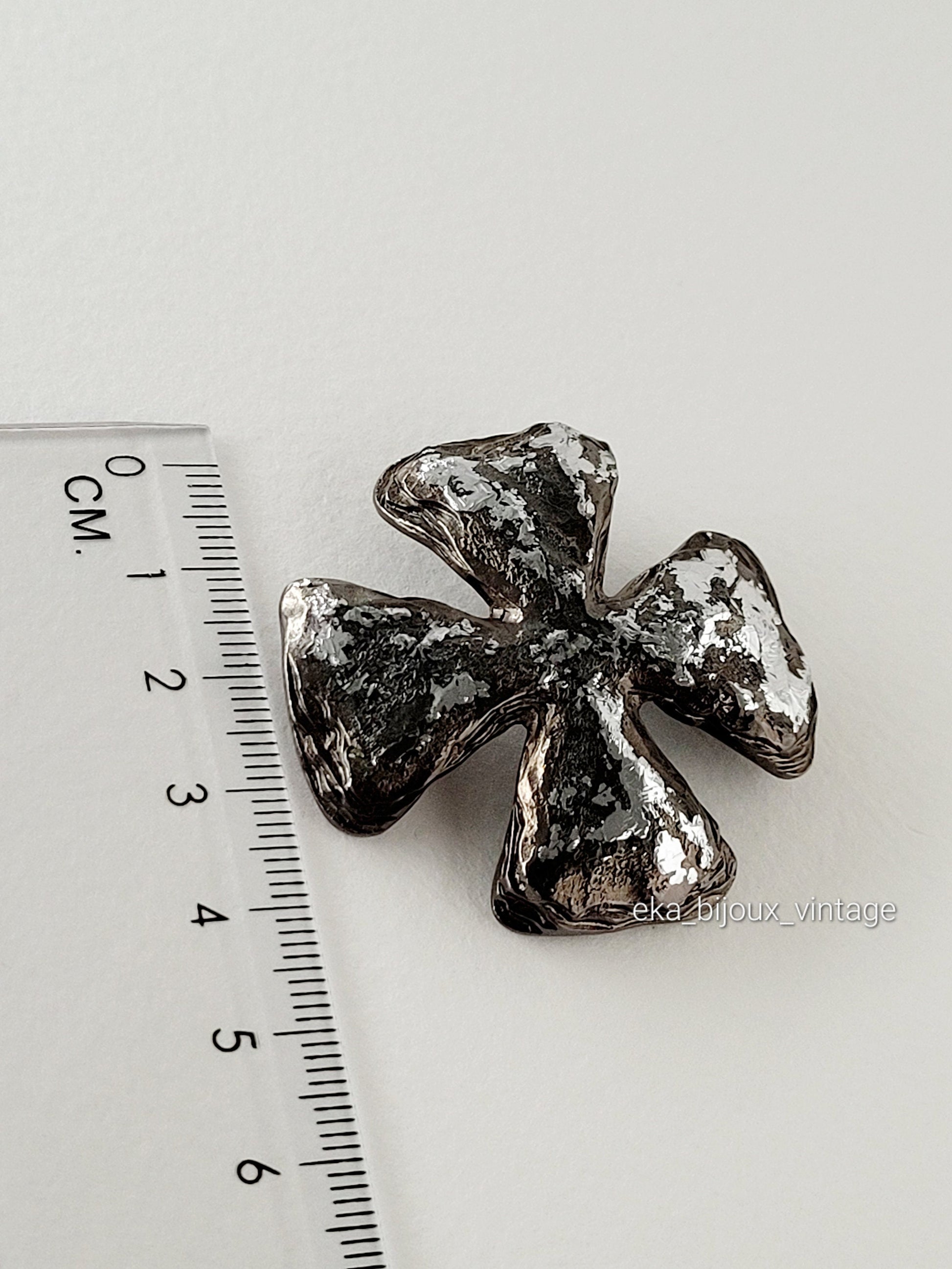 Authentique broche/pendentif Yves Saint Laurent vintage, en forme de croix, en plaqué argent.