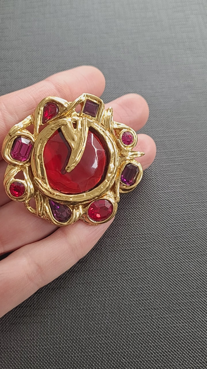 Yves Saint Laurent - Broche / Pendentif vintage Fleur rouge