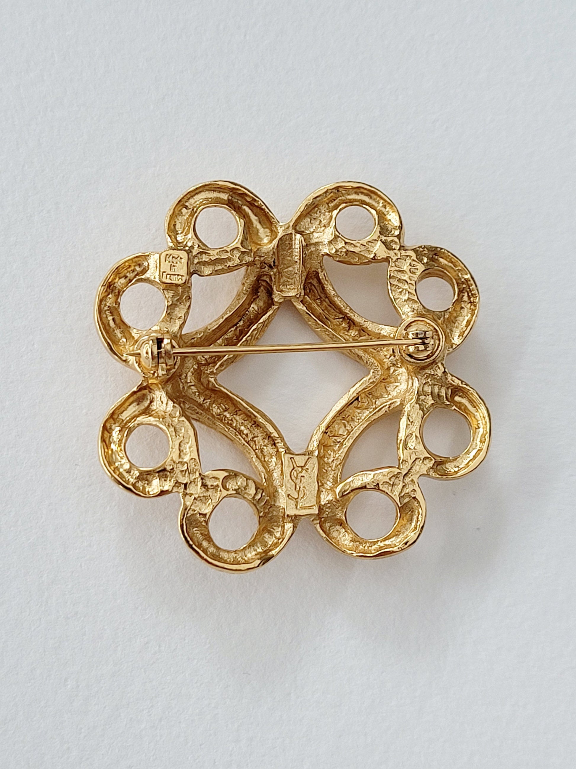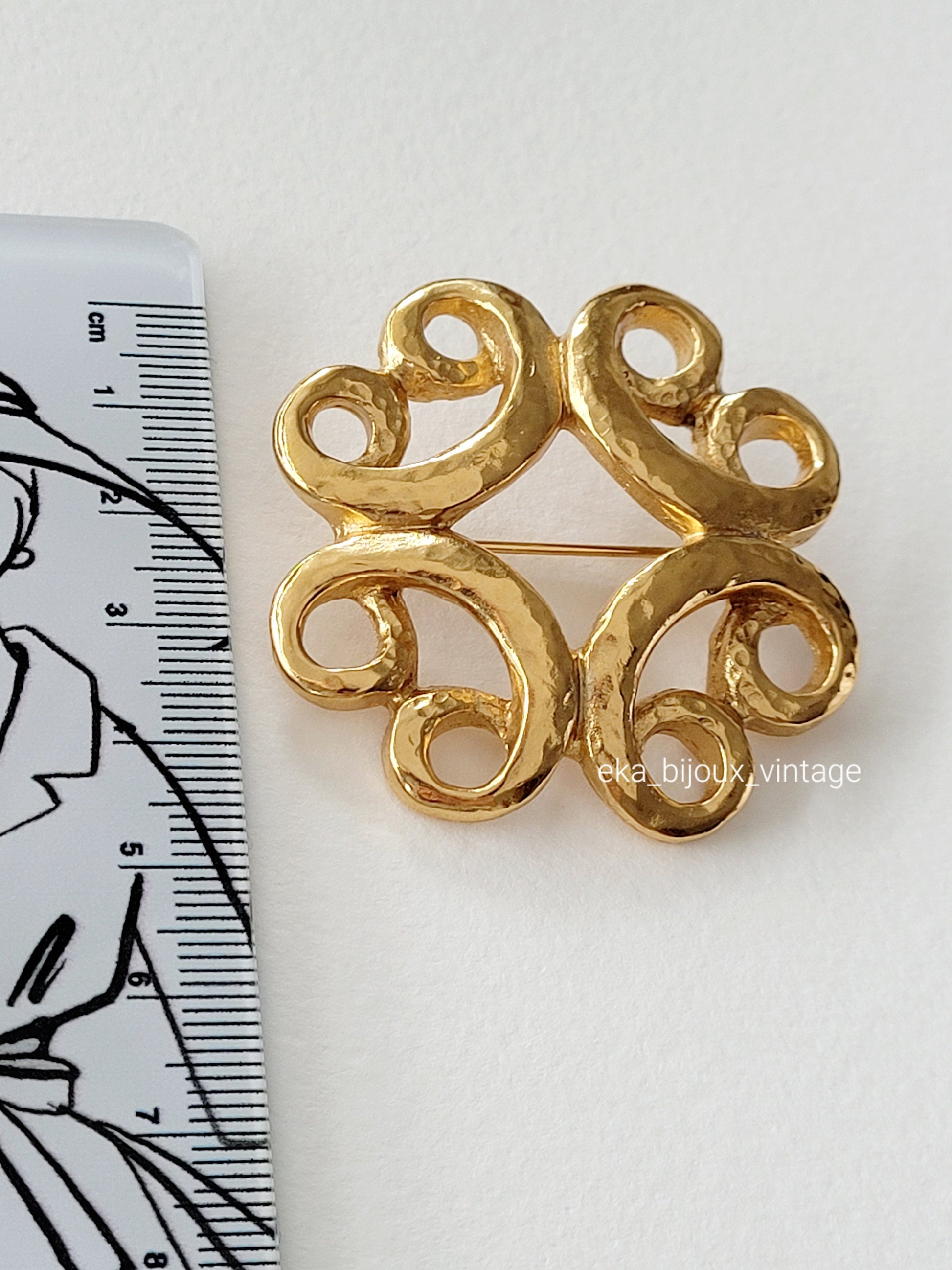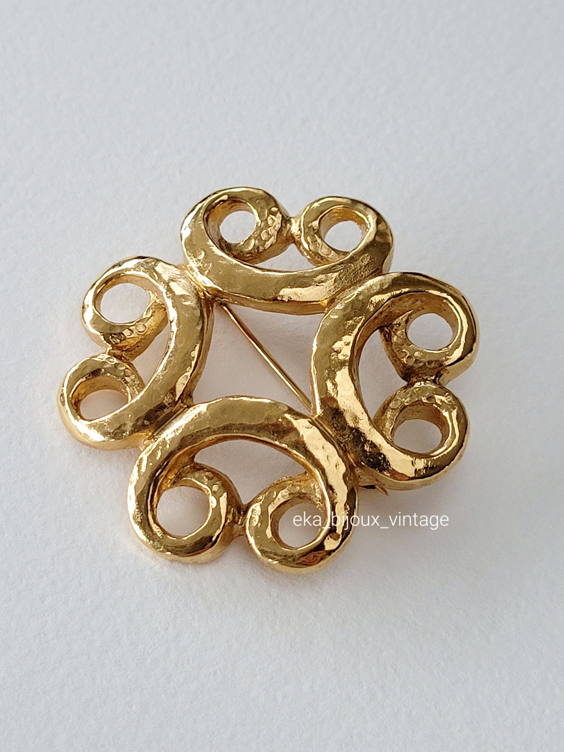 Authentique et magnifique broche Yves Saint Laurent en plaqué or martelé.