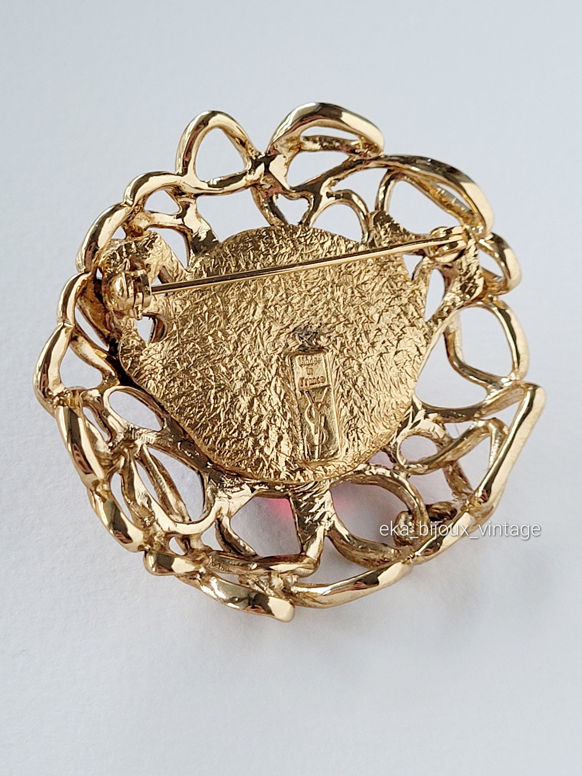 Authentique grande broche vintage Yves Saint Laurent en plaqué or en forme de fleur. Très belle pièce de collection.