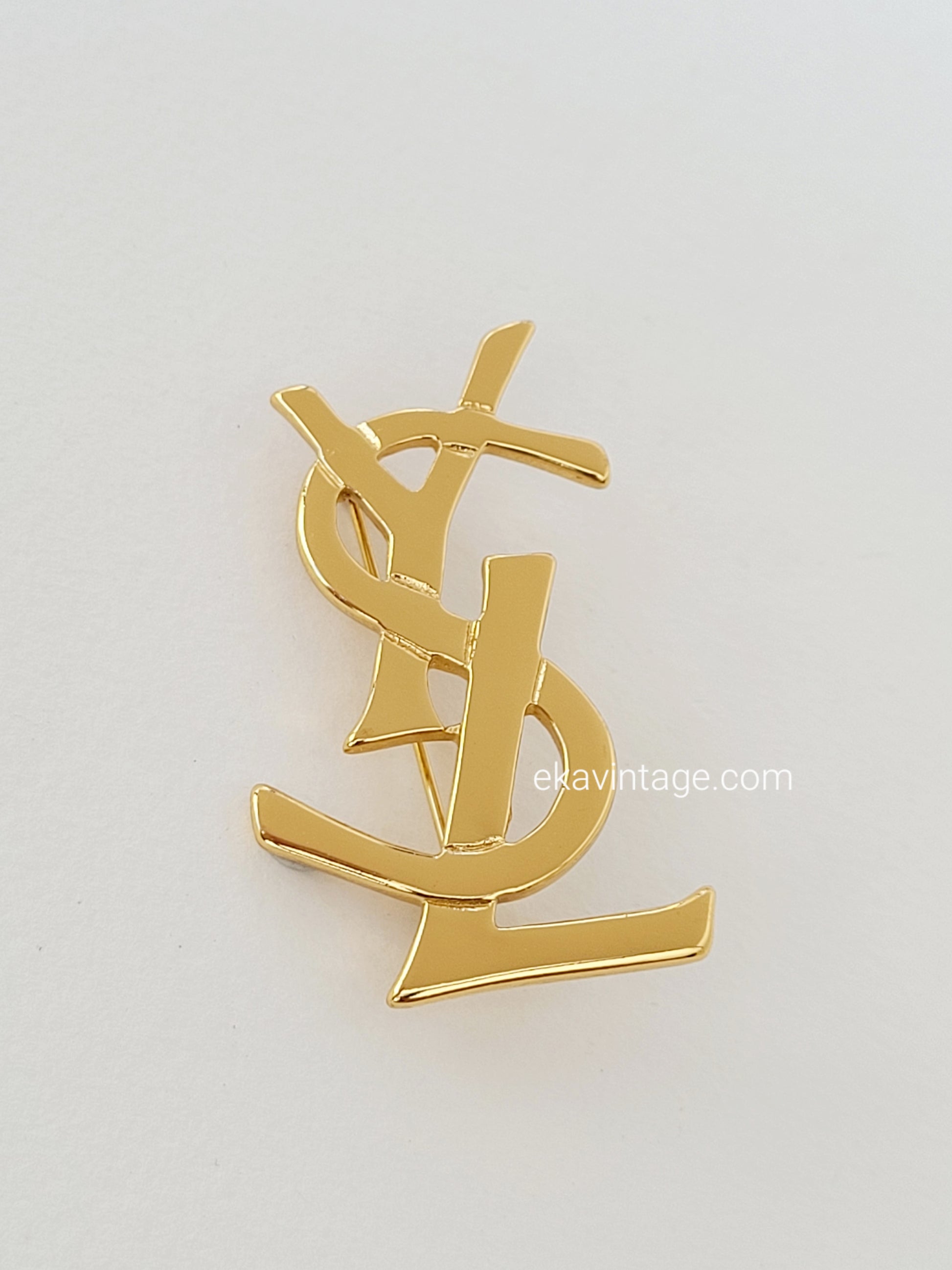 Authentique et magnifique grande broche Yves Saint Laurent, en plaqué or.