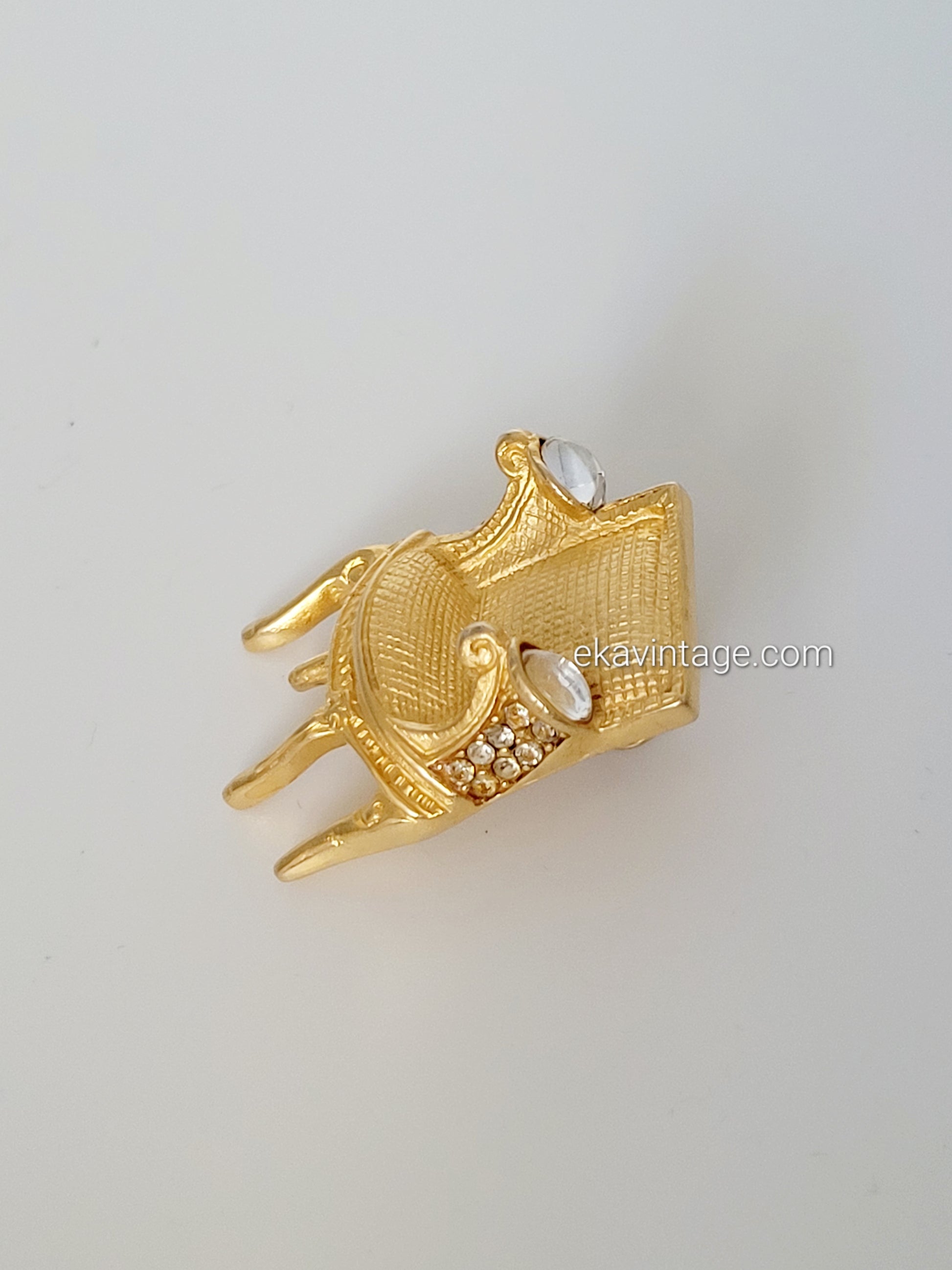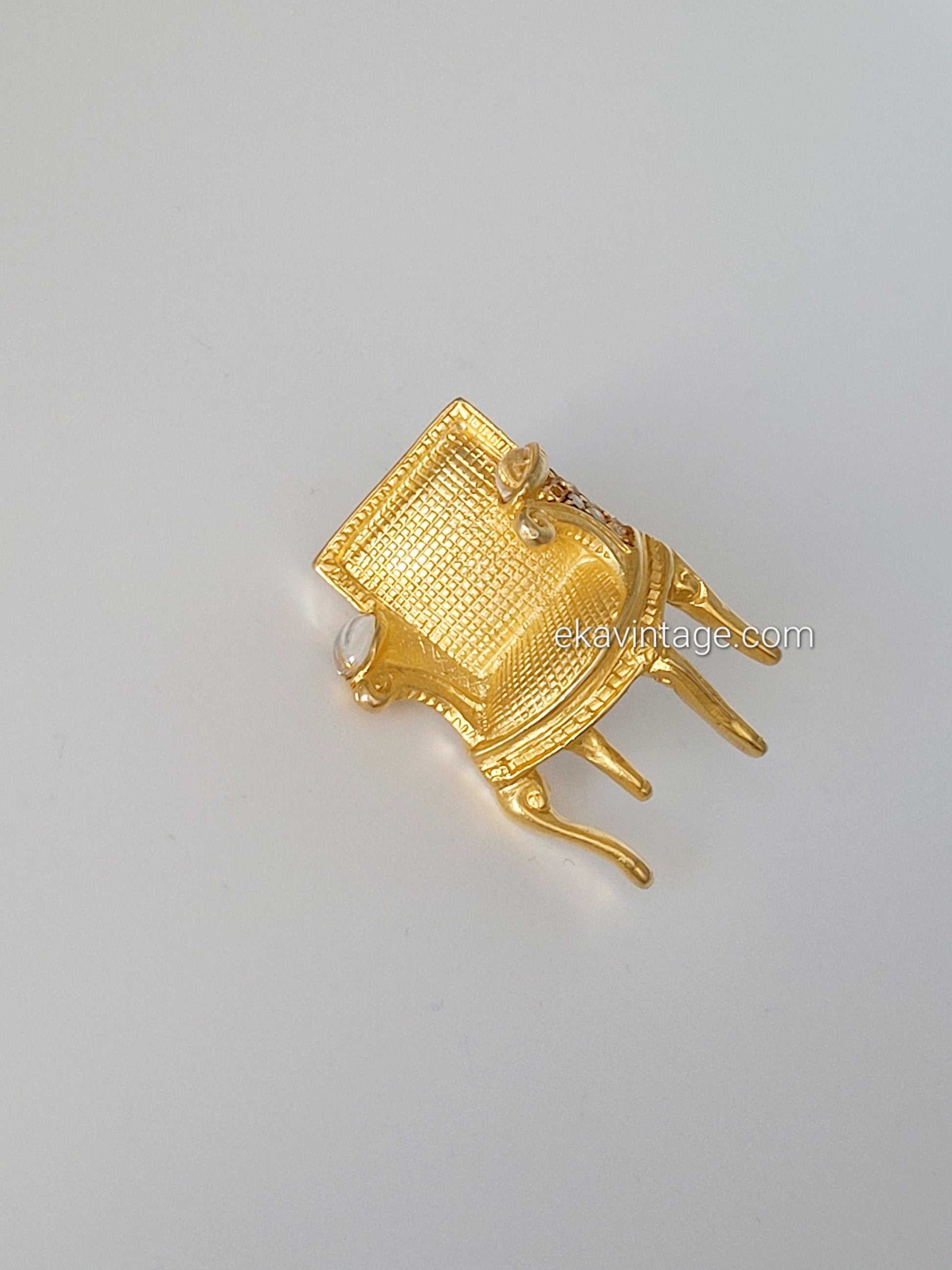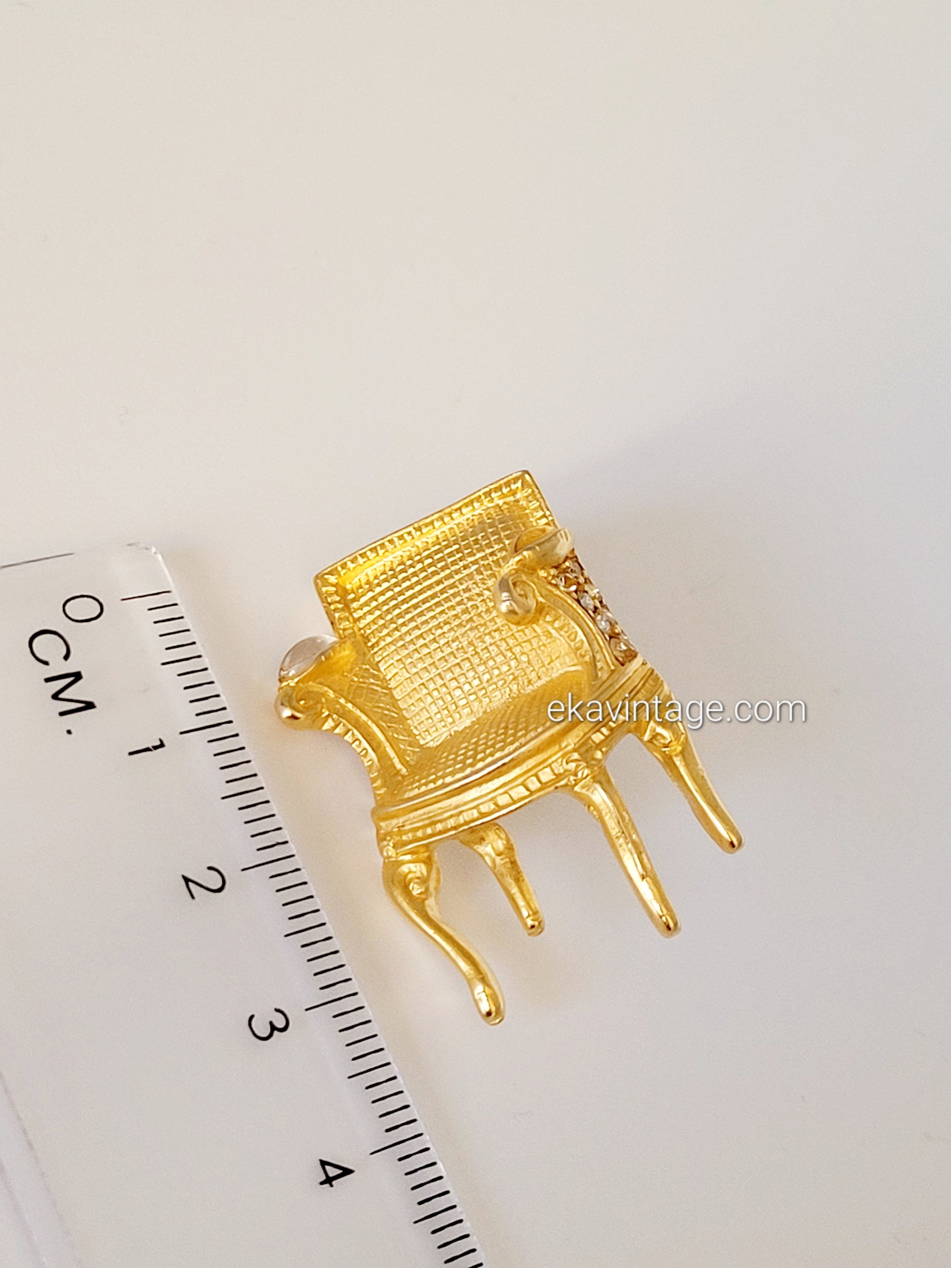 Authentique et magnifique broche en forme de chaise Louis XIV, miniature emblématique de Karl Lagerfeld.